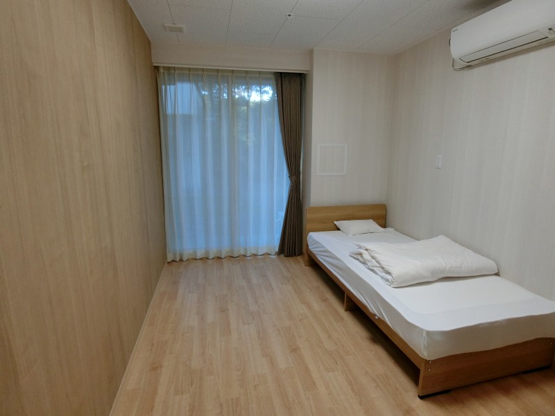 和室の利点の一つは寝具を片付けると部屋の空間を広く使える点ですが、今回の改修に当たり和室を洋室に切り替え、ベットを導入する事により寝具の上げ下ろしの負担の軽減を選択しました。